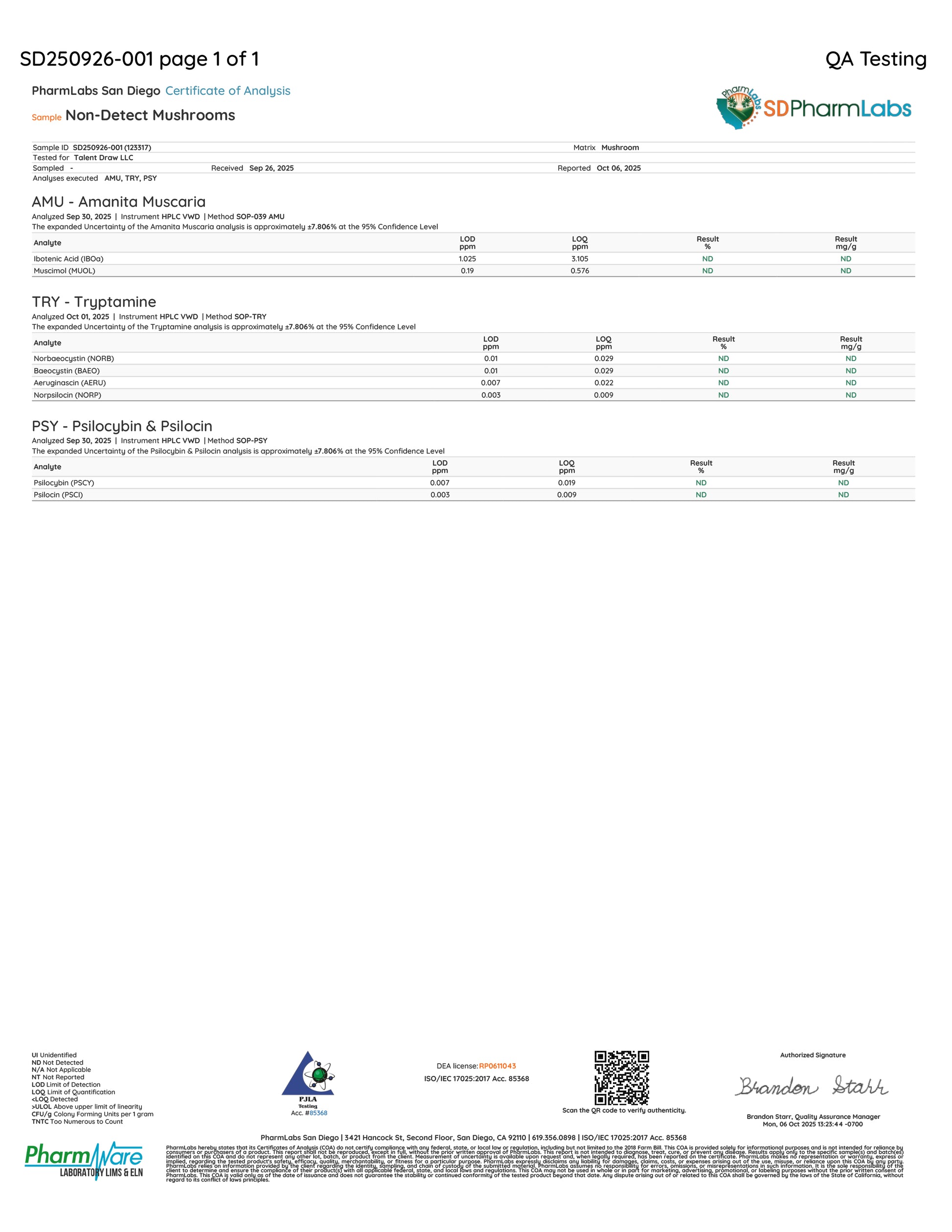 Ingredients: Non-Detect Psilocybe Cubensis Mushrooms from Penis Envy